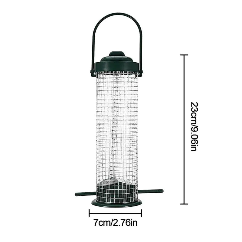 At approximately 23 × 7.8 × 13.7 cm, it is compact enough for balconies and small gardens, but still easy for birds to spot from nearby trees or hedges. The dark green colour blends naturally with foliage, helping nervous birds feel secure while feeding.