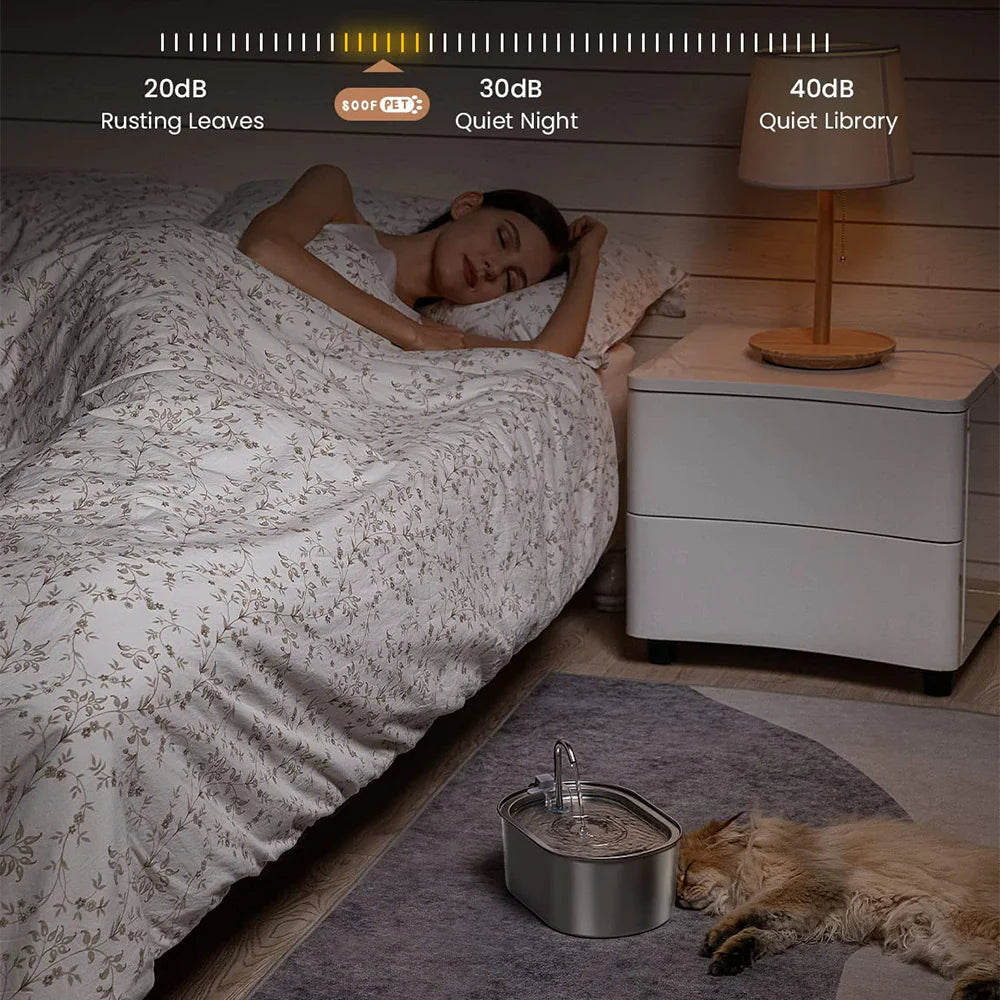 Stagnant water bowls discourage drinking and breed bacteria fast.