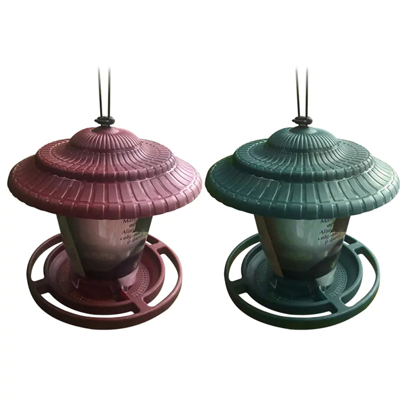 Made from durable plastic, this feeder handles light rain, sun exposure, and temperature changes better than thin acrylic alternatives. Available in green and red, both colors provide good contrast against foliage or walls, making it easy for birds to spot while blending naturally into garden settings.